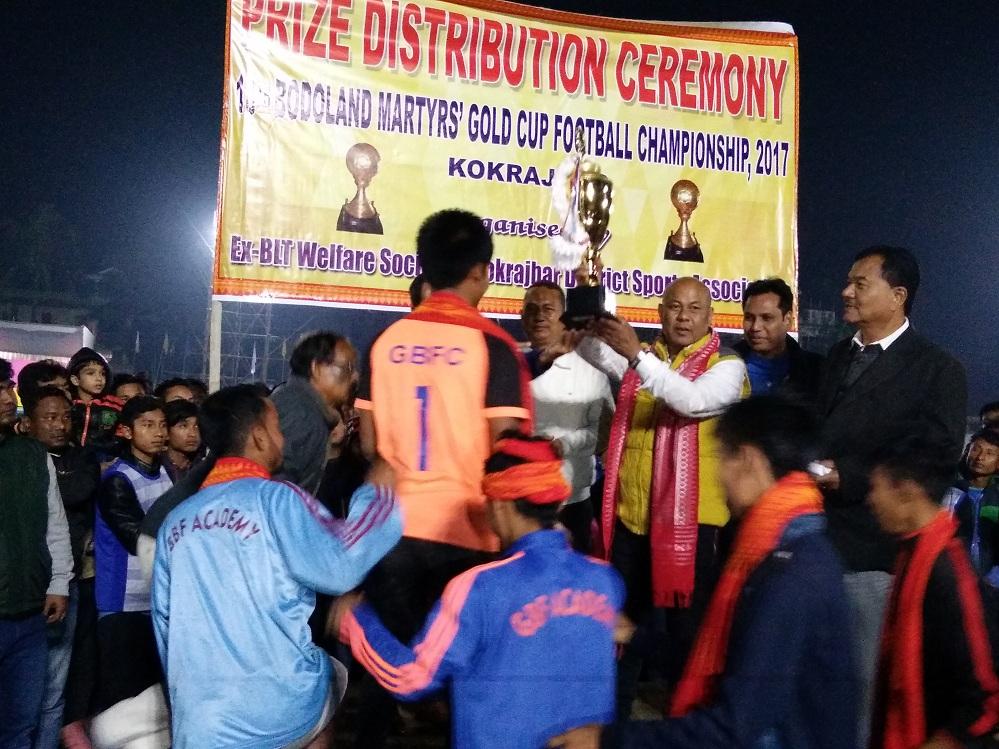 Gabinda Basumatary (GB) FC, Zaraguri won the Bodoland martyrs gold cupfootball championship -2017 defeating NFR, Maligaon by 1-0 goal in the final match today being held at KDSA stadium ground in Kokrajhar.