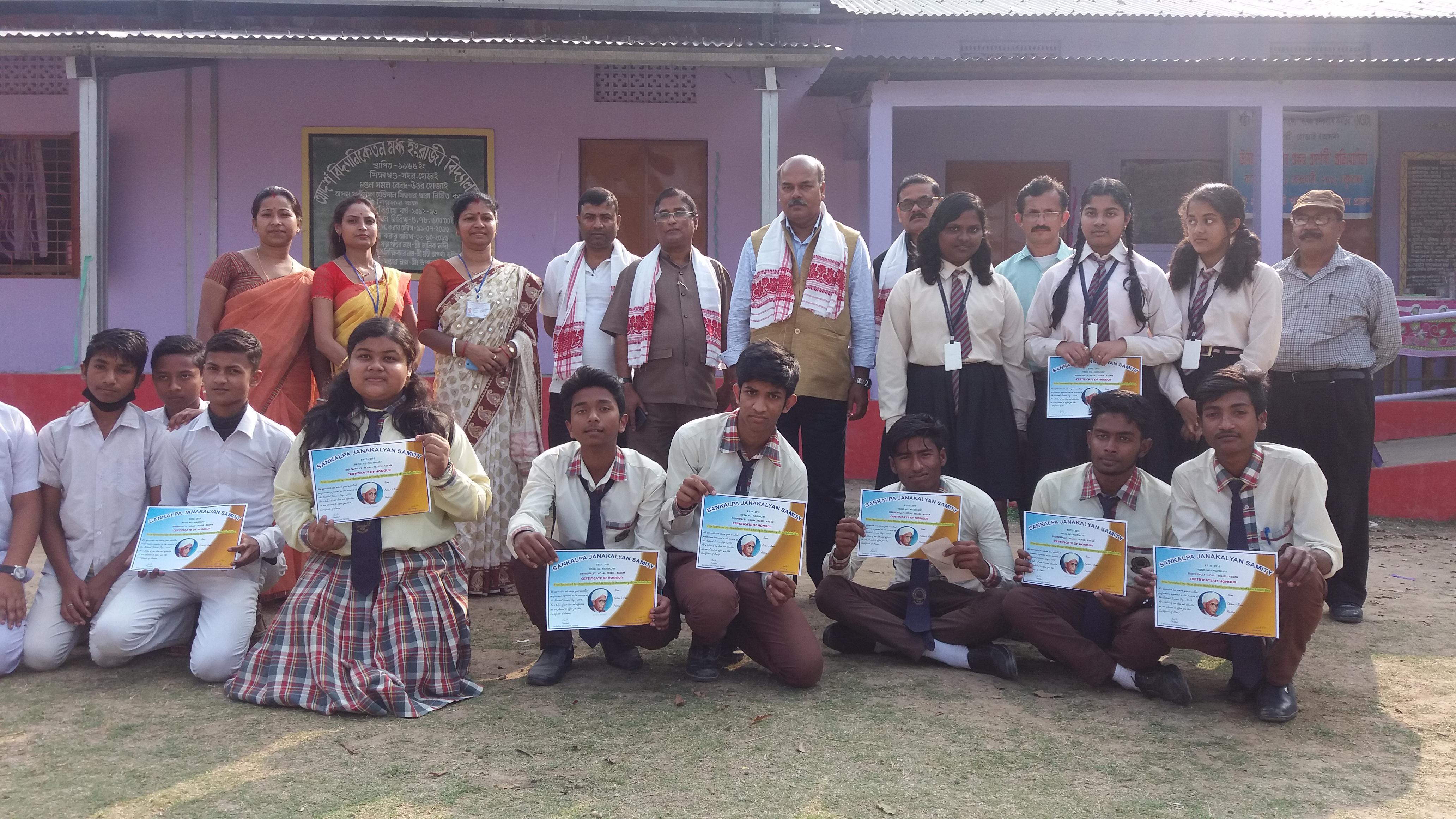 To mark the occasion a Science exhibition cum Competition was organised were nearly seven school of Hojai participated Viz., Deshabandu Bidyapith,Morning Glory English High School, Abdul Hasib High School (Boys), Abdul Hasib High School (Girls), Skylark English Academy, Zenith English Academy and Adarsha Bidya Niketan High School.