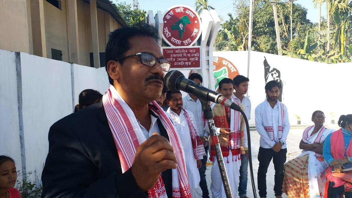 Namrup: AASU regional Committee observed the Swahid Divas on Monday with hosting of flag in Namrup Sonari Tiniali Swahid Mandap by regional committee president Kalpajit Gogoi. Assam Jatiyata Badi Yuba chatra Parishad , Namrup Tai Ahom Student Union , Fertiliser Workers Union , Fertiliser Swarmik Union , Gramya Unnayan Sangha etc and schools and colleges representative took part in the event.
