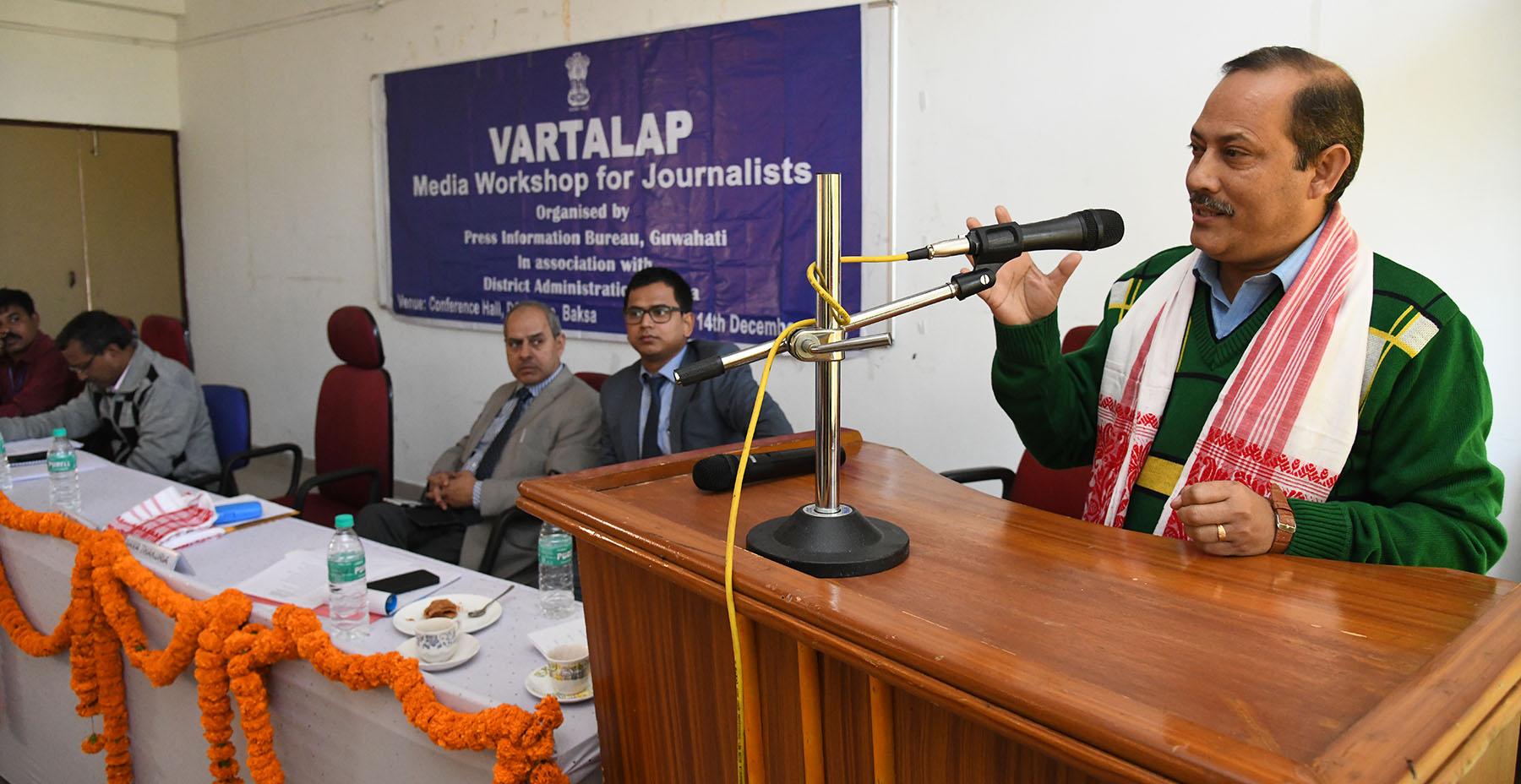 Organized by the Press Information Bureau’s Guwahati office in collaboration with the Baksa district administration on 14 December 2018 at Musalpur town, the media interactive workshop titled ‘Vartalap’ was also addressed by the host district magistrate Sanjeeb Kumar Gogoi.
