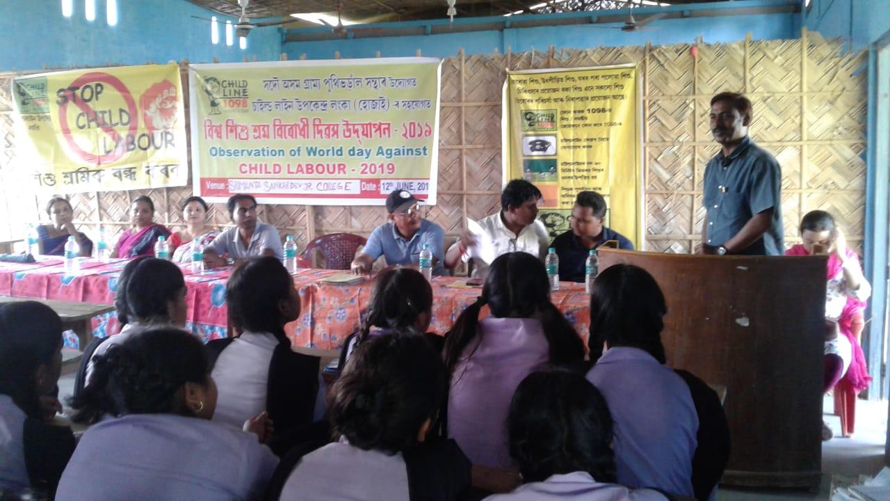 Focussing on the theme of the World Anti Child Labour Day on Wednesday Sadau Assam Gramya Puthibharal Santha in association with Childline Sub centre Hojai district organised an awareness program at hall of Srimanta Sankardev junior college of Sankardev Nagar in Hojai.