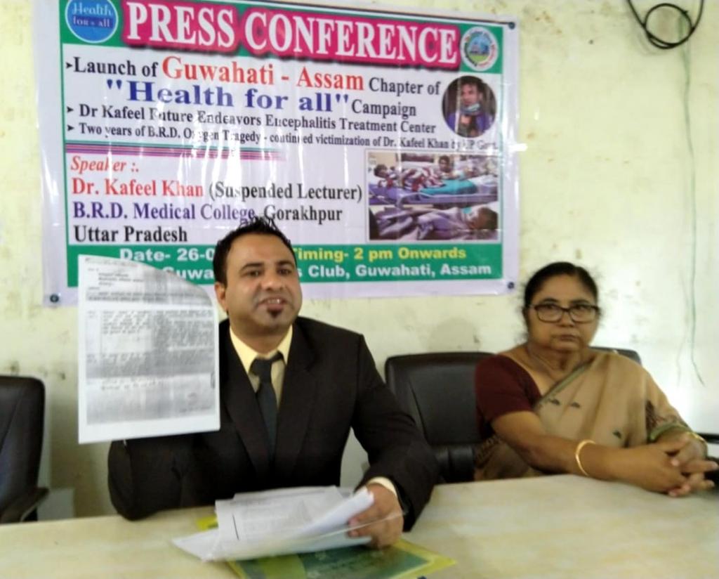 Dr Kafeel Khan addressing press conference at Press Club in Guwahati on 26-08-19 while launching Guwahati-Assam chapter of “Health for All” campaign.