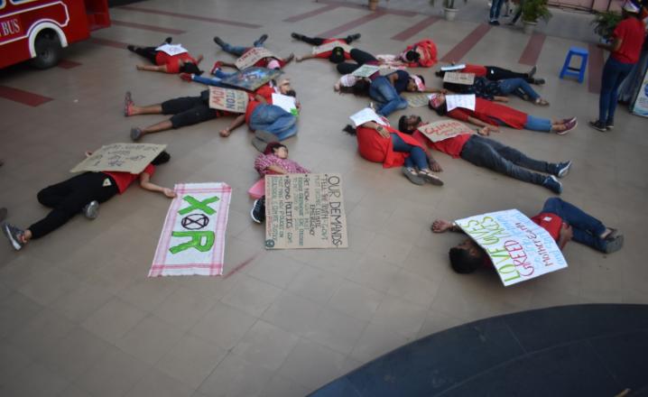 During the protest, the citizens read out a climate emergency declaration, followed by a symbolic die-in to protest inaction on the climate crisis.