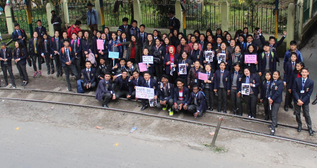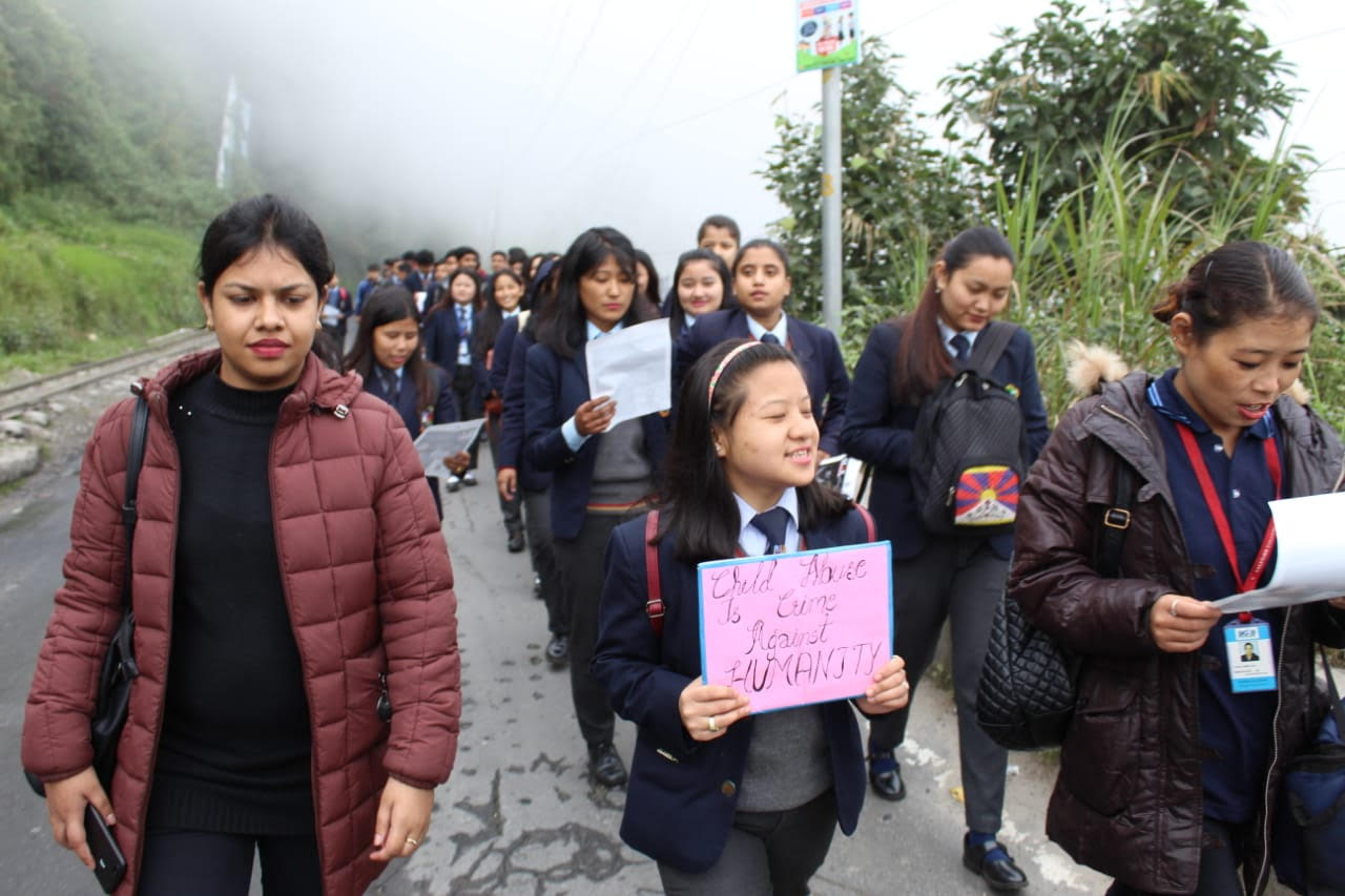 Mid way, the rally stopped at Sonada Railway Station situated on high street in the middle of the town, where the students distributed handbills and had sloganeering stressing the need for prevention of child abuse and human trafficking.