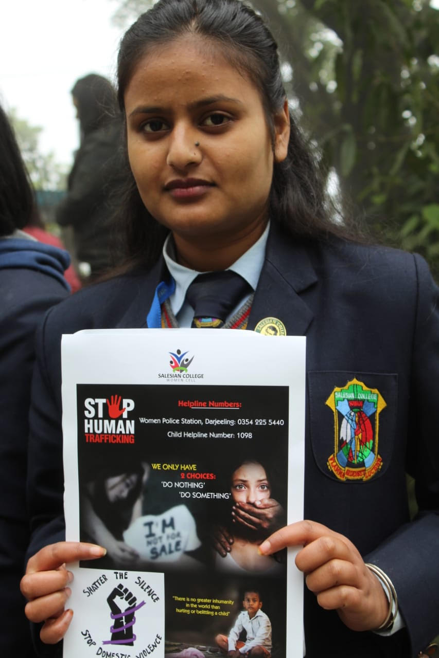 Sonada: The Women’s Cell of Salesian College Sonada along with Radio Journalists (RJ) of Radio Salesian organized a rally on 25th October 2019 to create awareness on the need of child support and prevention of human trafficking.