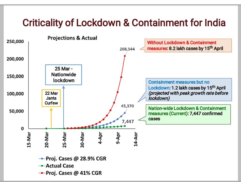 এই মূল্যাংকনৰ দৃষ্টিৰে চালে পুনৰ ৩ মে’ ২০২০ লৈকে বৃদ্ধি কৰিবলগীয়া হোৱা পূৰ্বৰ ২১ দিনীয়া লকডাউন সফল হোৱা বুলি চৰকাৰে কৰা দাবী একপ্ৰকাৰ অসত্য হৈ পৰে। ১৪ এপ্ৰিলত মোদীয়ে কৈছিল, 'যেতিয়া আমাৰ দেশত মাত্ৰ ৫৫০ জন কৰ’নাত আক্ৰান্ত হৈছিল তেতিয়াই ভাৰতে ২১ দিনীয়া সম্পূৰ্ণ লকডাউনৰ দৰে বৃহৎ সিদ্ধান্ত গ্ৰহণ কৰা হৈছিল। ভাৰতে জটিলতা অধিক হৈ পৰালৈ অপেক্ষা নকৰিলে। ইয়াৰ পৰিৱৰ্তে আমি আৰম্ভণিতেই যিমান সম্ভৱ সিমান তাৎক্ষণিক সিদ্ধান্তৰে ইয়াক প্ৰতিহত কৰিবলৈ চেষ্টা কৰিলো।’