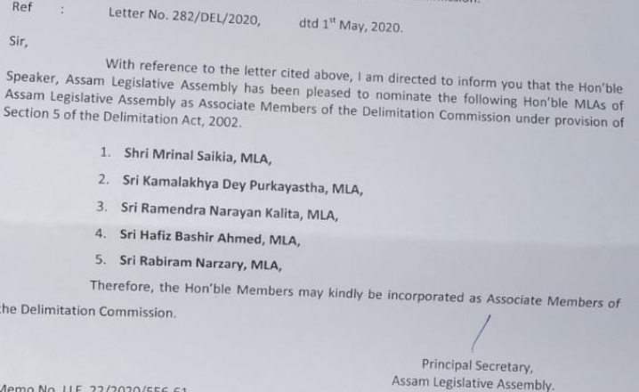 In an official notification, Goswami named Golaghat MLA Mrinal Saikia from BJP, Kamalakhya Dey Purikayastha from Congress, Ramendra Narayan Kalita from AGP, Rabiram Brahma from BPF and Hafiz Bashir Ahmed from AIUDF as the members to be inducted in the delimitation panel.