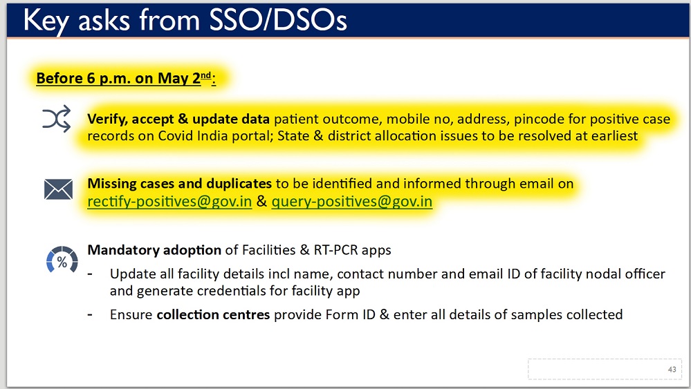 (ICMR’s 29 April presentation asking states to confirm details of more than 33,000 records on Covid19 positive citizens in 3 days)