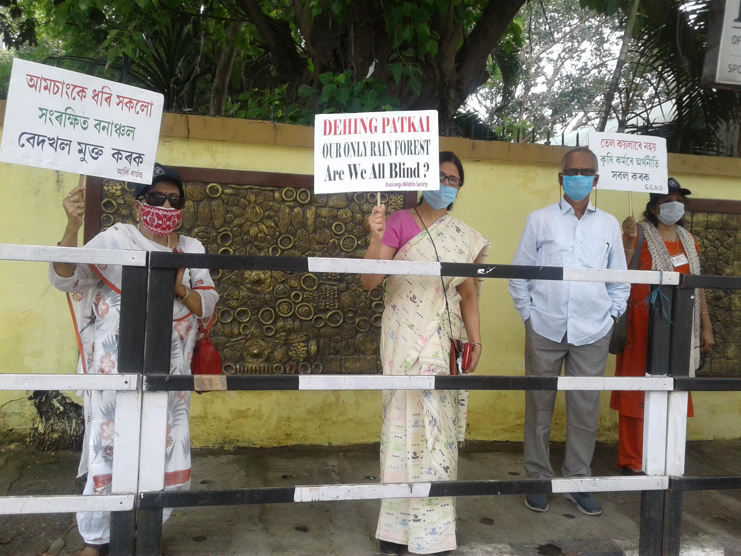 Kaziranga Wildlife Society also joined a symbolic protest to highlight the prevailing state of affairs in the management of forest and wildlife in the state on the occasion of World Environment Day in front of the Guwahati Press Club on Friday with Early Birds, Aranya Suraksha Samity and Green Guard Nature Organization.