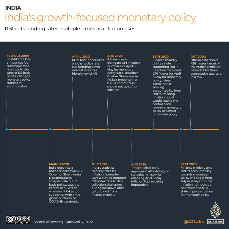 ভাৰতীয় ৰিজাৰ্ভ বেংকে ২০২০ চনৰ জানুৱাৰী আৰু ছেপ্টেম্বৰৰ ভিতৰত একেৰাহে তিনিটা মাহত মুদ্ৰাস্ফীতিক আইনীভাৱে নিৰ্দিষ্ট ৬ শতাংশৰ সীমাৰ ভিতৰত ৰাখিবলৈ অক্ষম হৈছিল।