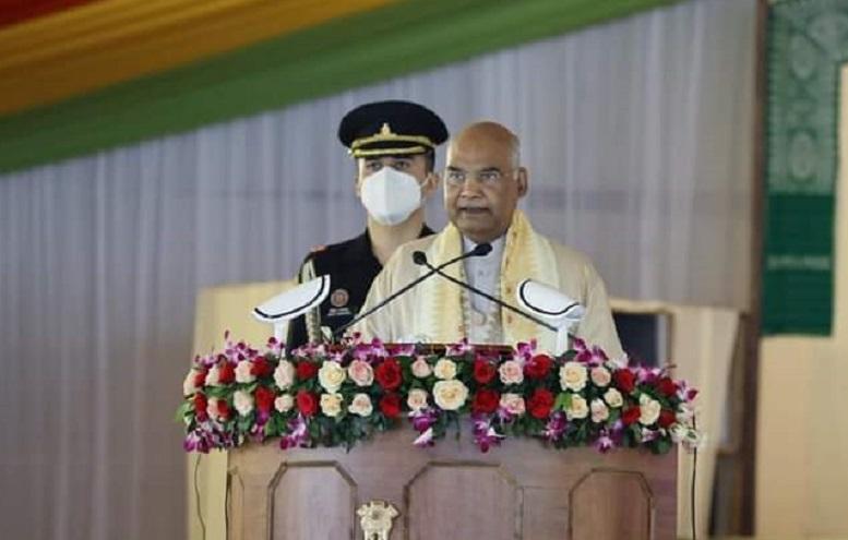 Tamulpur (BTR), Assam: After several years of violence, Bodoland and the Bodo people have accepted the principle of Bodofa Upendra Nath Brahma 'Live and Let Live’ to establish peace and progress for prosperity, observed Ram Nath Kovind, President of India at the 61st annual conference of Bodo Sahitya Sabha, Gwnjwng Pathar, Kachubari, Tamulpur, BTR Assam today. President Kovind congratulated the citizens of Tamulpur 35th district of Assam and hoped that it will prosper with community participation in its building and transformation process. He praised Bodo Sahitya Sabha for inviting delegates from Nepal, Bhutan and Bangladesh connecting Bodo speakers of the world under its leadership. He also appreciated its community connection, multiethnic cultural integration, literary knowledge sharing and education. The president praised the Bodo community for its patience for peace and hoped it would continue to strive until the community thrives. The President also launched a literary online platform of Bodo language .Bihung, engineered by Bodo Sahitya Sabha, for e-translation, literary and educational support that can be used as a dictionary.