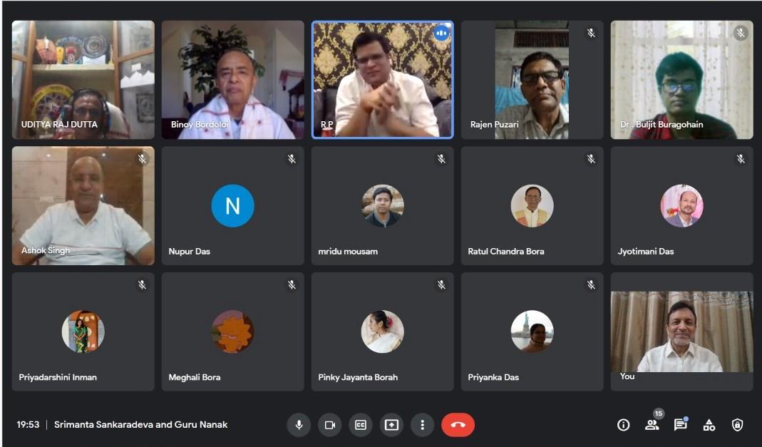 As part of the international webinar series on Different facets of Sankaradeva Studies, organized by Society for Srimanta Sankaradeva, the sixth webinar was held in association with Naamghar Association of America, USA (NAAM) and Delphic Council of North East India on 29th May, 2022. Dr Ratul Chandra Bora, former Registrar of Mahapurusha Srimanta Sankaradeva Viswavidyalaya was the resource person. He delivered lecture on “Srimanta Sankaradeva and Guru Nanak”. The webinar was moderated by Dr Sanjib Kumar Borkakoti, author and scholar of Sankari culture, who is also President of Society for Srimanta Sankaradeva.