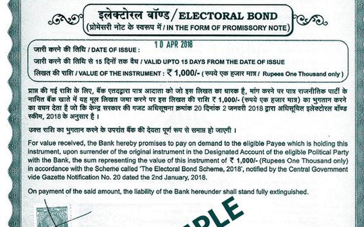 ২০১৭ চনত তদানীন্তন বিত্তমন্ত্ৰী অৰুণ জেটলীয়ে ঘোষণা কৰা নিৰ্বাচনী বণ্ড আঁচনিৰ অধীনত কোম্পানী, ব্যক্তি, ট্ৰাষ্ট আৰু এন জি অ’ সমূহে বেনামীভাৱে যিমান বিচাৰে সিমান বণ্ড ক্ৰয় কৰিব পাৰে, ১০০০ টকা, ১০ হাজাৰ টকা, ১ লাখ টকা, ১০ লাখ টকা আৰু ১ কোটি টকা। এই বণ্ডসমূহ এছ বি আইৰ হাতত থকা এটা ৰাজনৈতিক দলৰ একাউণ্টত জমা কৰা হয়।