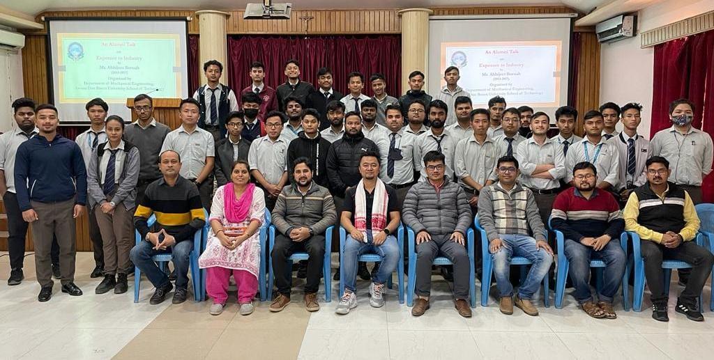 On February 7th, the Mechanical Engineering Department of the Assam Don Bosco University School of Technology hosted an Alumni Talk at the Azara campus conference hall. The head of the department, Dr. Buljit Buragohain, welcomed the students and felicitated the event's resource person, Abhijeet Boruah, who is an alumnus of the department.
