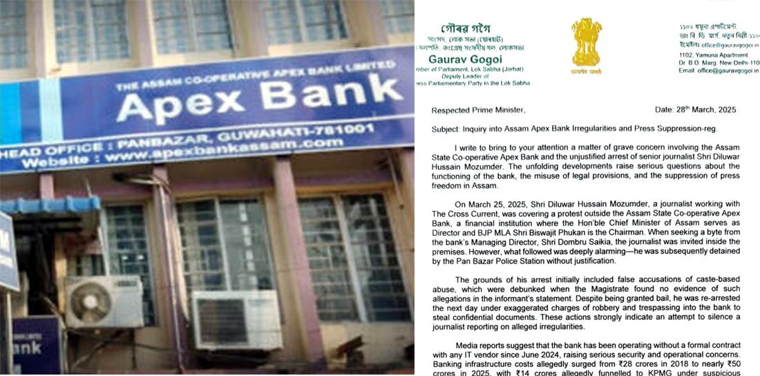 In a post on his official X handle, Gogoi stated, “I have written a letter to Hon’ble PM Shri Narendra Modi ji regarding the need to investigate financial irregularities at Apex Bank, as the state government is busy arresting people and intimidating Assamese media.” The letter also mentions the arrest of journalist Dilawar Hussain Mazumdar, which Gogoi cites as an example of misuse of power by the Assam Police. He alleges that Mazumdar was arrested on March 25 while protesting against the Apex Bank scandal, highlighting an attempt to suppress press freedom.