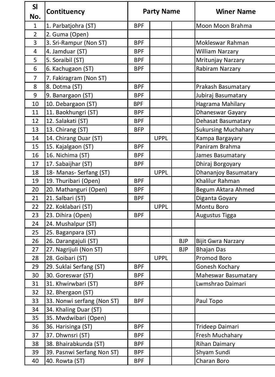 According to reports, the Hagrama Mohilary-led BPF is taking a huge lead in most of the seats, far ahead of the ruling UPPL, which is leading in only 5 seats.