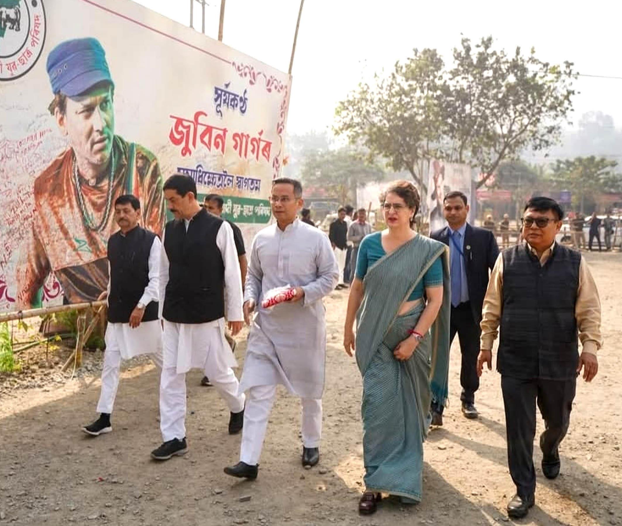 During the recent visit of senior Congress leader Priyanka Gandhi Vadra to Assam, the Wayanad Parliamentarian raised the issue of Zubeen stating that the legendary king of humming always stayed away from politics and hence there should be no politics over his unfortunate death. Ms Priyanka did not forget to visit Samadhi Kshetra of Zubeen at Sonapur locality near Guwahati to pay tribute to the departed soul. Personally attacking CM Sarma for pursuing politics of polarization, the Gandhi scion denounced the relentless mental harassment to APCC chief Gaurav Gogoi and his family over their gratuitous Pakistan links. She also visited the sacred Shakti Peeth atop NIlachal hills in the heart of Guwahati to seek eternal blessings from Devi Kamakhya.