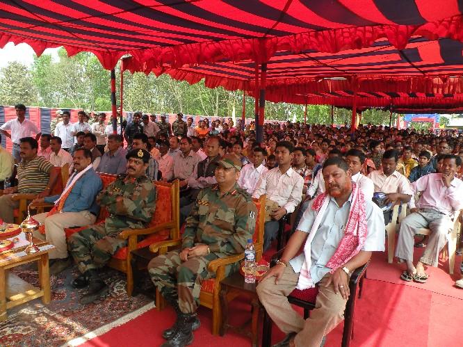 Thaneswar Malakar,Deputy Commissioner,Udalguri,who has also been known as a state level writer requested people of Udalguri district to work hard for a complete change in the present education system in the state.Addressing people as a special guest on the occasion of the inauguration of two new class rooms and toilets in Murmela High School near Tangla on March 12, he said that the upcoming engineering college in the district would very much change the scenario.The DC thanked Brig.VK Tiwari,Commander,Red Horn's 21 Artillery Brigade,Hatigarh for launching as many as six new welfare schemes in Udalguri district for the development of infrastructure of the villages under 'Operation Sadbhabana”. He also thanked Col. Sunil Upadhaya, Commanding Officer of 315 Field Regiment for taking up the humble job of social uplift ment with special attention to remote villages. He said the district needed more development in the field of education and health.He also requested people of the villages to excercise their voting right in the ensuing assembly poll on April 11.