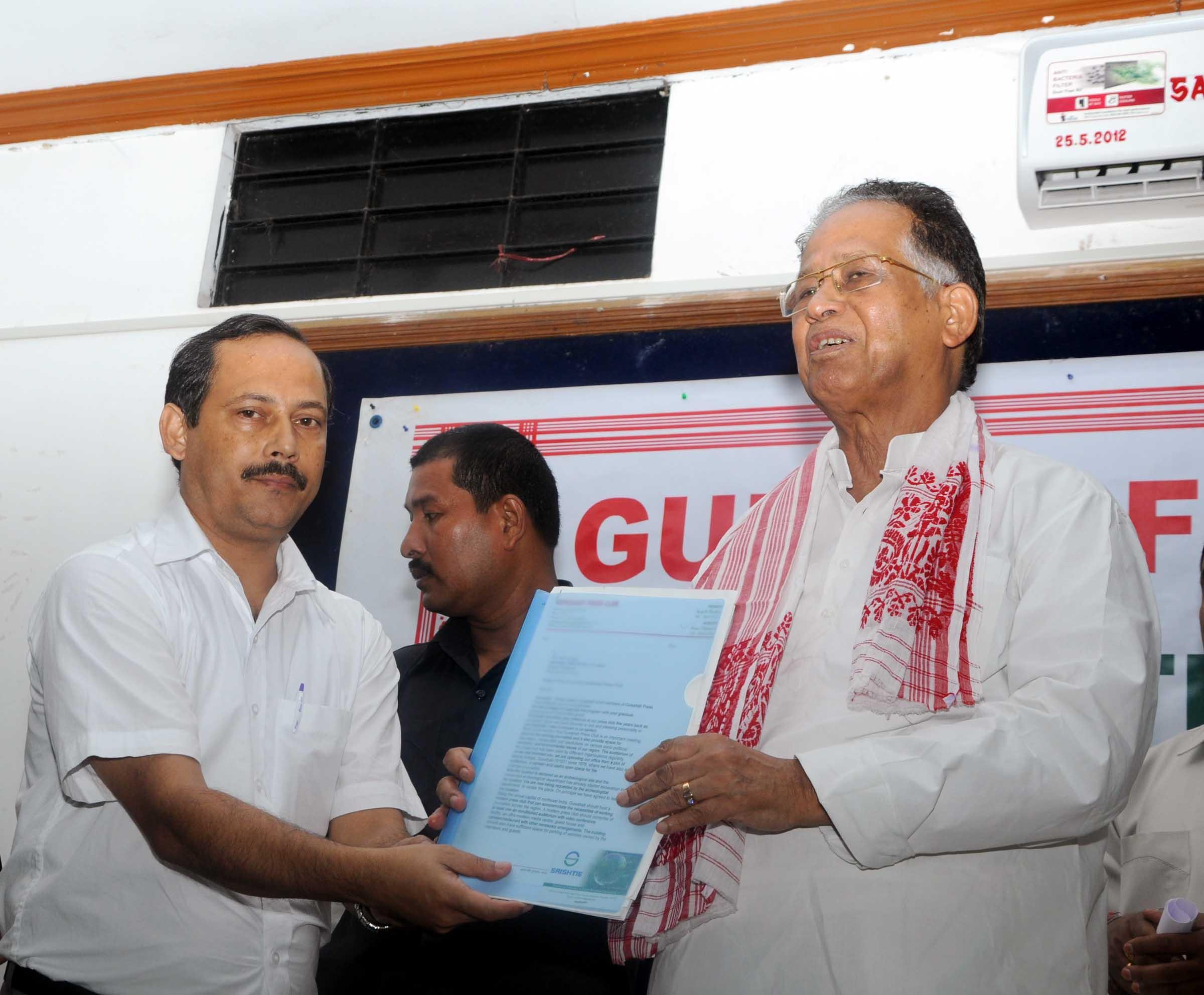 The third time chief minister of Assam in northeast India, Gogoi also promised the pioneer press club a plot of land in the heart of the city. On the occasion, a power point presentation was made in front of Gogoi, where a number of pictorial slides of the proposed press club building and its spacious campus were shown.