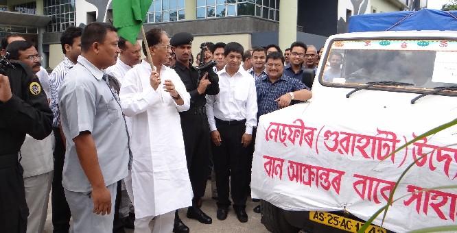 North Eastern Development Finance Corporation Ltd (NEDFi) has joined the relief effort to give succor to the victims of the devastating flood that has recently swept across the state of Assam. A team was sent to Nalbari district with provisions, mosquito nets, tarpaulin sheets, baby food etc. Chief Minister Tarun Gogoi flagged off the effort. B P Muktieh, CMD NEDFi was present during the flag off ceremony.