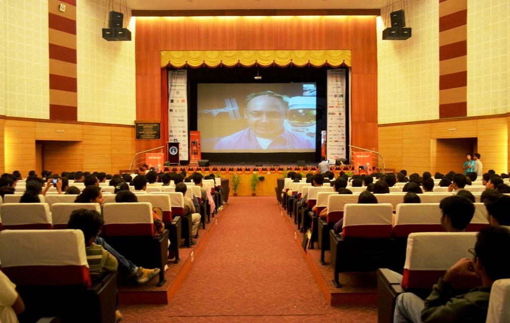 NASA (National Aeronautics and Space Administration) USA successfully performed the Virtual Appearance program of Astronaut E. Michael "Mike" Fincke with Tezpur University’s Annual Technical Festival ‘TechXetra 2012’ on November 2, 2012. The astronaut virtual appearance program is an exciting and memorable experience for all involved. The students and faculty of Tezpur University as well as some of the neighboring institutes interacted with NASA astronaut at the Kalaguru Bishnu Prasad Rabha Auditorium at Tezpur University. The event was organized as part of the annual technical fest of Tezpur University, TechXetra 2012 with the sponsorship of FASS. The event was a huge success with over 1000 people attending it.