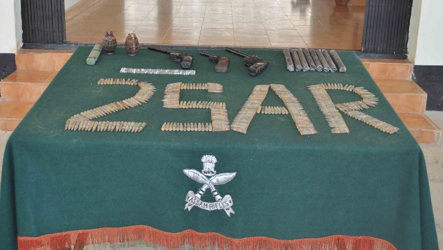 Only of March 15, 9 Madras stationed at Maibang recovered huge cache arms including 2 nos 9mm pistol with magzine, 4 nos of 12 bore guns, 4 nos Chinese grenade, 2 nos radio set, 2 nos IED and few detonators which were hidden in old water tank at two locations from Lungkhor village under Maibang Police station.