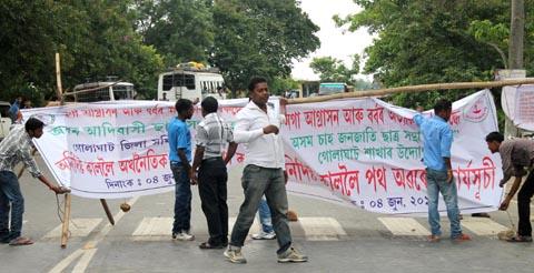 The Golaghat unit of Assam Tea Tribes Students’ Association (ATTSA) has begun indefinite economic blockade against Nagaland from today onwards at Rangajan area on NH-39. The blockade has been called in protest against the killing of Sanjay Bhumij in indiscriminate firing by Naga miscreants at Naginijan Tea Estate in Marioni along the Assam-Nagaland border. More than hundred Trucks carrying amenities to Nagaland had been stranded at Rangajan. The agitators were demanding a compensation of ten lakh rupees to the family of the deceased, a high level inquiry into the matter and to bring the culprits to book and also to ensure the security of the life and property of the people leaving in the border areas.