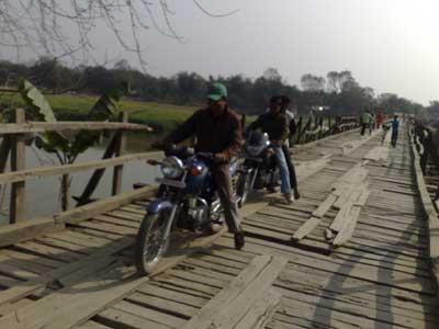 The wooden bridge at Mahuramukh, near Kamargaon, Golaghat, connects several villages with NH37 is in a very worst and dangerous condition.