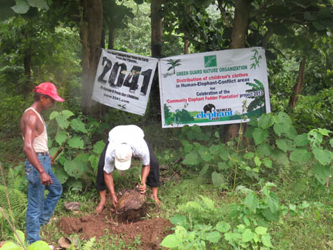 Green Guard Nature Organization organized 'World Elephant Day 2013' program amongst fringe forest communities affected by intense Human-Elephant Conflict (HEC) at the Karbi foothills, near Chapanala, Nagaon. Over 200 children from fringe forest communities were provided clothes donated to our organization by Mr. SarwanDeep Singh from Delhi, at a ceremony at Samasya line, Lungsung, in the presence of Forest staff, Lungsung T.E. manager and staff, village elders & women from several nearby villages. Around 50 banana saplings & stumps were also planted under the ongoing 'Community Elephant Fodder Plantation' program 2013 to mark the 2nd World Elephant Day, which is a global event organized on August 12 to spread conservation awareness about elephants.