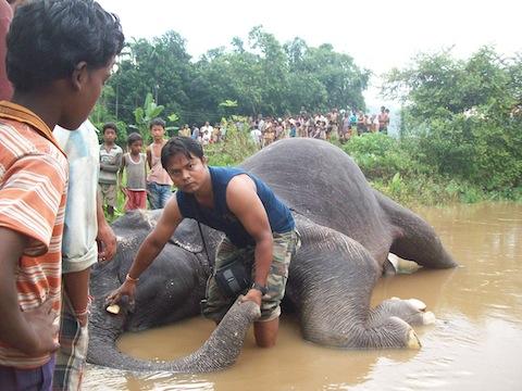 Villagers of Ghilalota found a dead tusker in the waters of the Hodhodi in the early hours of 25 September that had been washed downstream by the surging waters of the Hodhodi due to heavy rains last night. Dulu Bora of Green Guard Nature Organization observed that the elephant tusks had been hacked off. As some of the local villagers were demanding to cut the trunk for meat (!), Dulu and other like minded people decided to move the body further downstream where they could mobilise people to prevent such perversion.