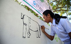 As part of the International Fund for Animal Welfare-Wildlife Trust of India (IFAW-WTI) Animal Action Education Programme, the young boys and girls of Kahitama High School, Bahbari High School and Manas M E School joined their teachers, local artists and members of theDepartment of Education, Bodoland Territorial Council (BTC) as they made their school walls explode with colour while painting their favourite animals all over them. The objective- to spread awareness on the plight of wildlife in Manas National Park. Already three schools have been covered under the campaign.