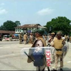 Krishak Mukti Sangram Samiti protests rally against evictions in Guwahati at Panjabari in Guwahati on Monday. Photo by UB Photos.