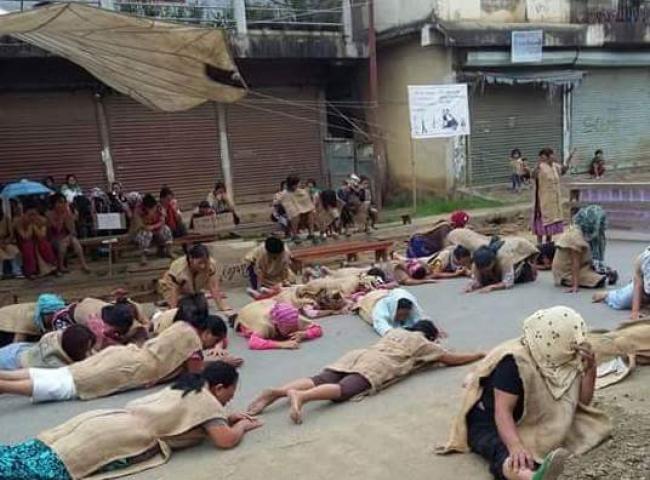 In an unprecedented move for sustainable peace in Manipur, women in large number started lying on a...