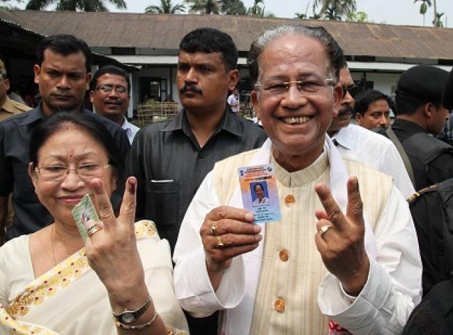 Chief Minister Tarun Gogoi casted his vote at a heavily attended polling booths on Monday morning...
